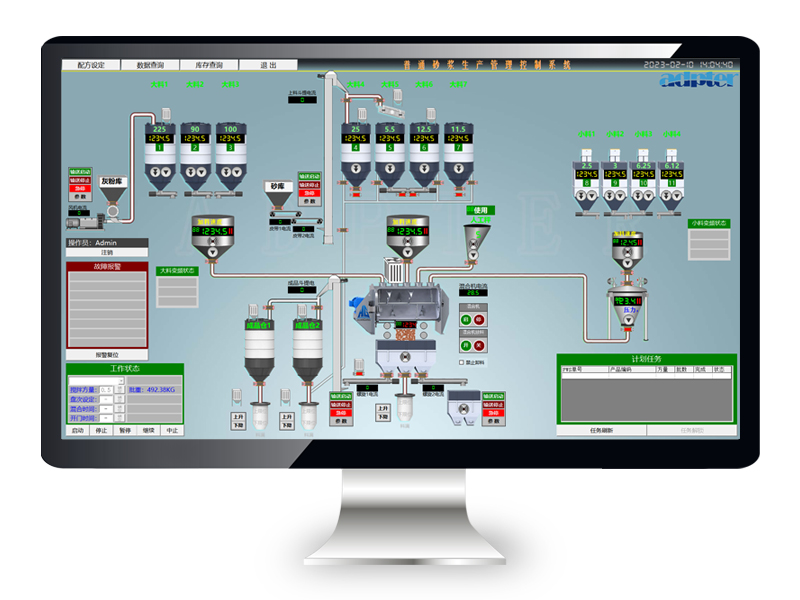 生產流程、卸料順序、攪拌時間計算方式可由用戶根據生產需要和操作習慣進行自定義。全方位在線實時檢測設備生產狀態,并進行安全連鎖管制。若出現異常工況,可準確提示設備故障點提醒工作人員進行定位查看與檢修,實現故障定位排除,從而改善生產管理水平、保證設備安全、提高經濟效益。