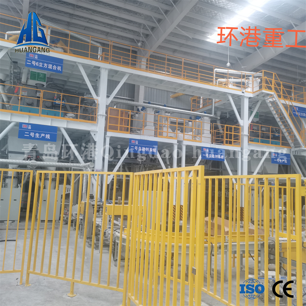 青島環港全自動環保膩子粉成套設備。通過調配原料的比例不同可生產內墻膩子、外墻膩子、普通膩子、鏡面膩子、石膏膩子等多種類膩子粉產品。每小時根據所選型號不同,可生產10~30噸產品,生產線主樓采用塔式結構,粉料倉安裝在主樓頂部,外加劑系統采用獨立平臺計量泵送。骨料自上而下經過計量層、混合機層、成品倉、包裝機、碼垛線。根據膩子粉的配方要求,可通過電腦計量精確配料后,經過混合主機攪拌,即時生產出需要的膩子粉產品。全過程采用智能自動化操作模式,減少人力投入