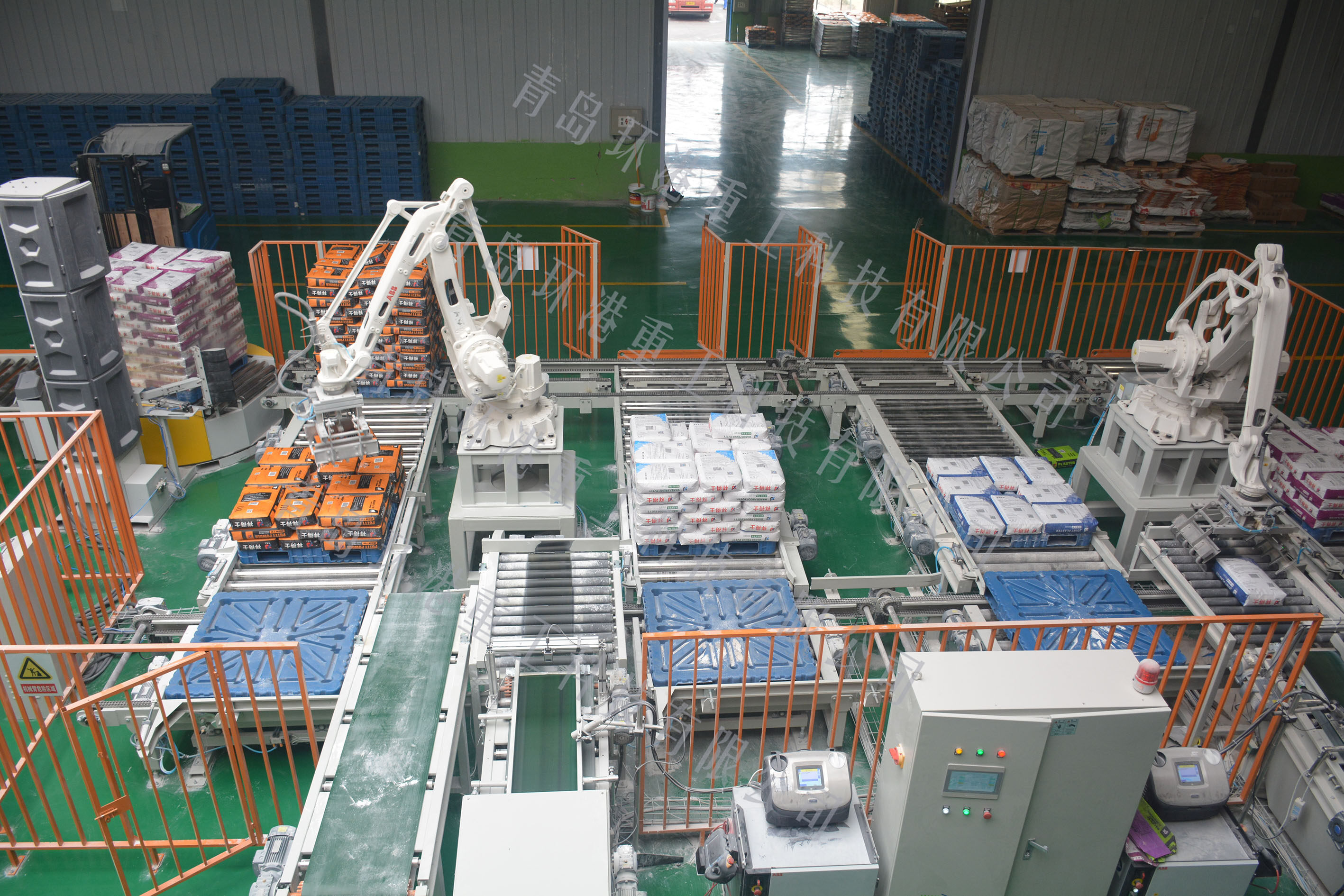 我們公司生產的碼垛機專用于袋裝干粉砂漿、袋裝石膏砂漿、膩子粉等砂漿產品的碼垛,避免工人塵肺病等職業病的發生,把惡劣環境下的人工作業轉變為機器自動作業,為企業改善工作條件,減輕個人體力勞動,減員增效起到了關鍵作用。